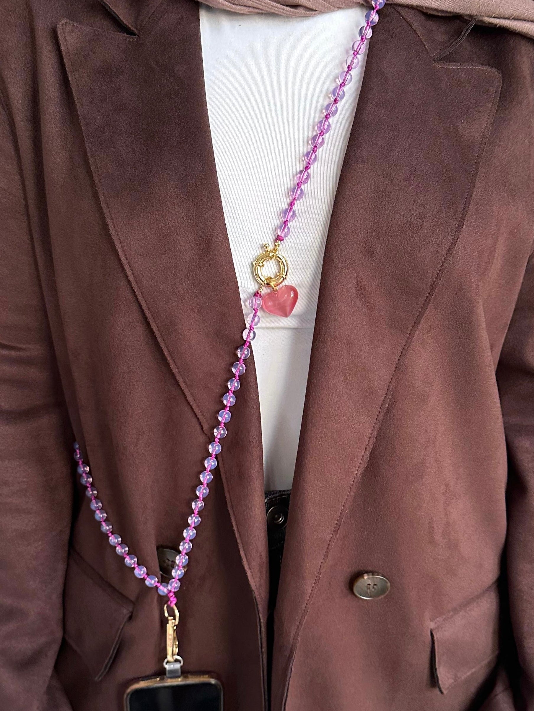- Handmade with marmar stone and a pink agate heart , soft, elegant, and unique.