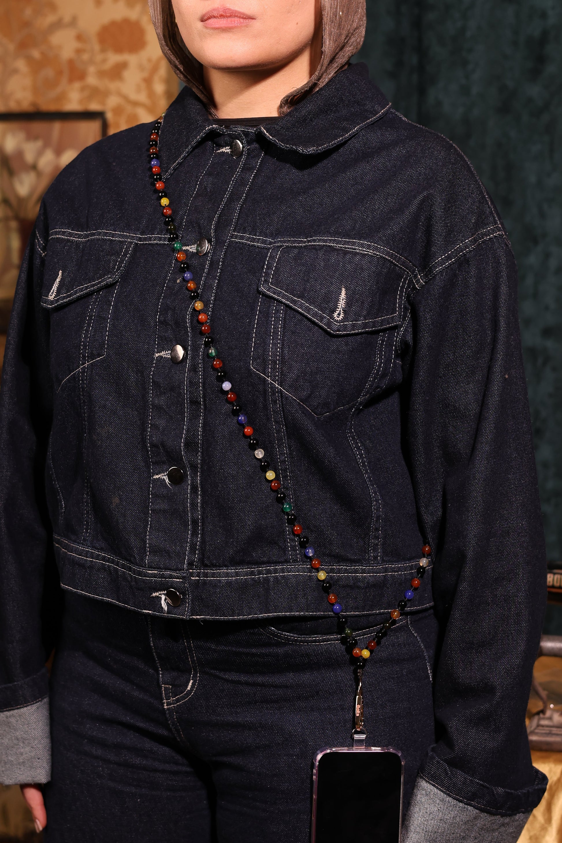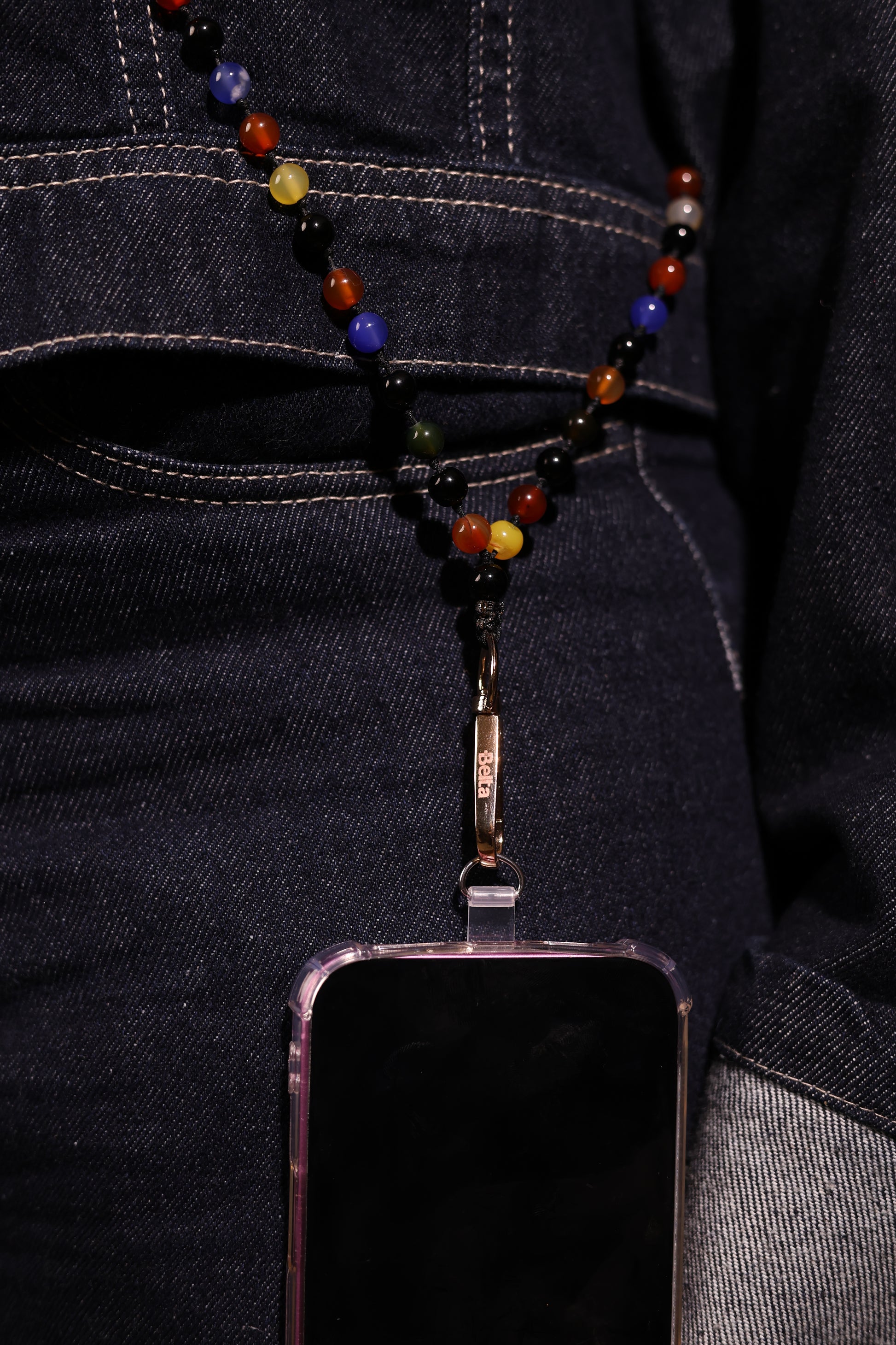 Comes with plastic card ( lanyard) to attached the chain to your phone.
