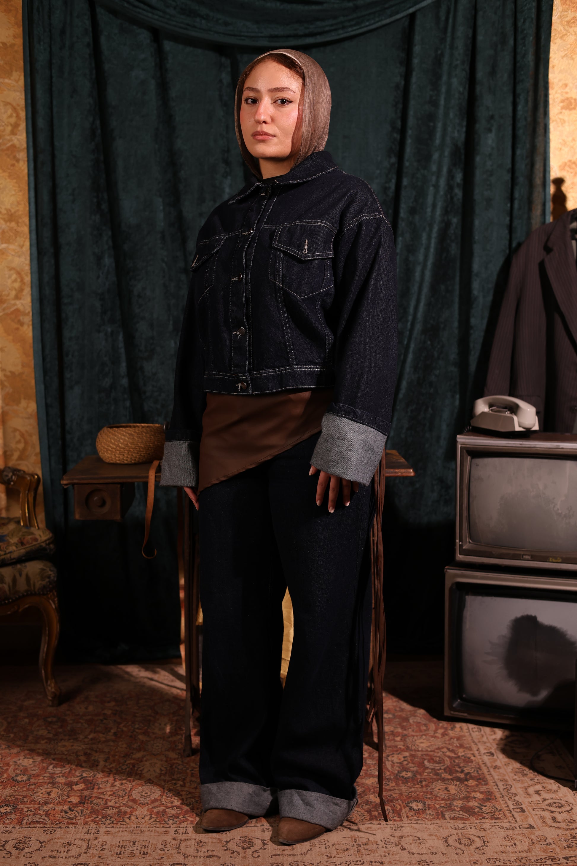 Adjustable leather wrap belt designed to tie at the side for a perfect fit.