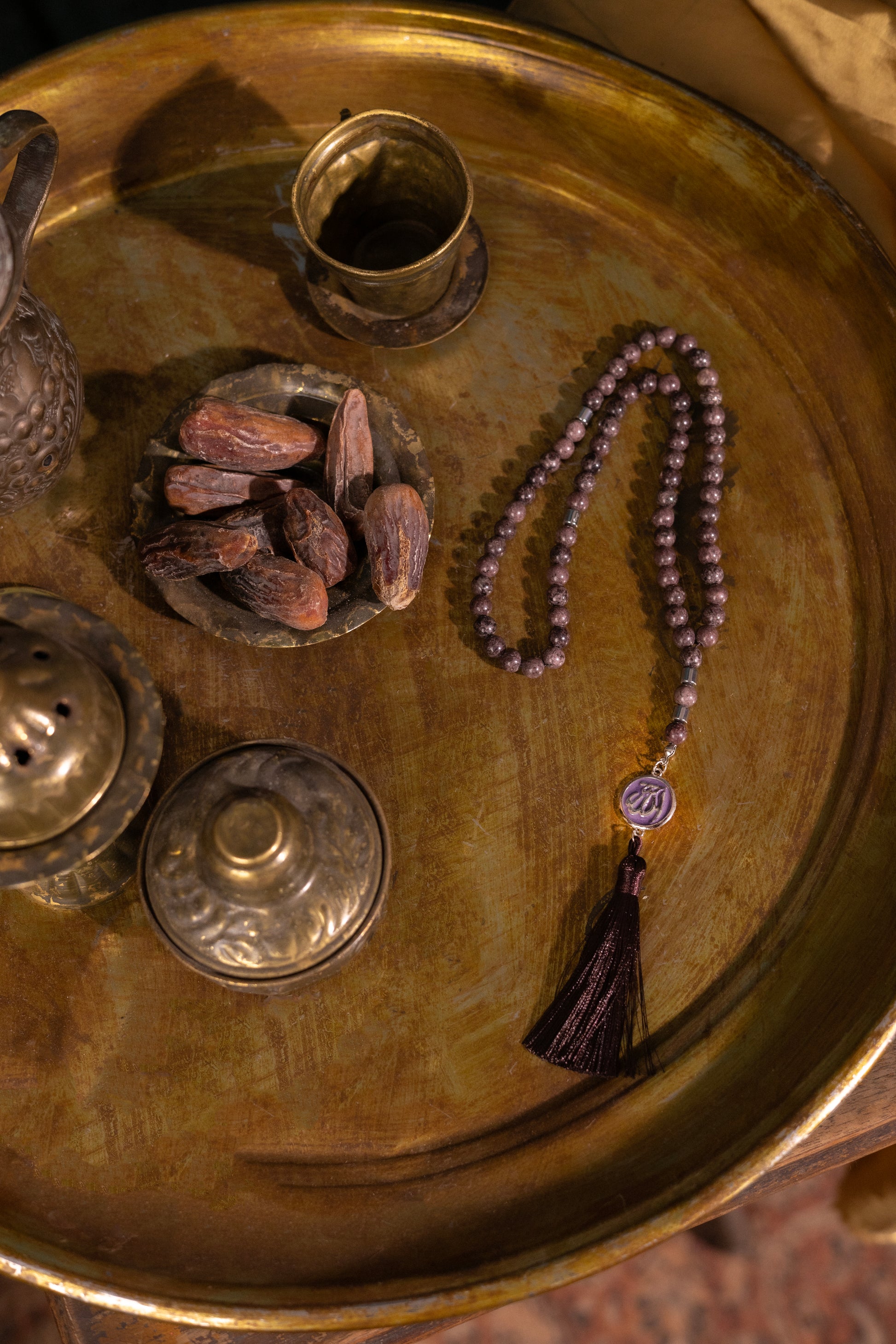 66-bead agate prayer bead, wearable as a tasbeeh or necklace. Perfect for Ramadan looks. Unisex