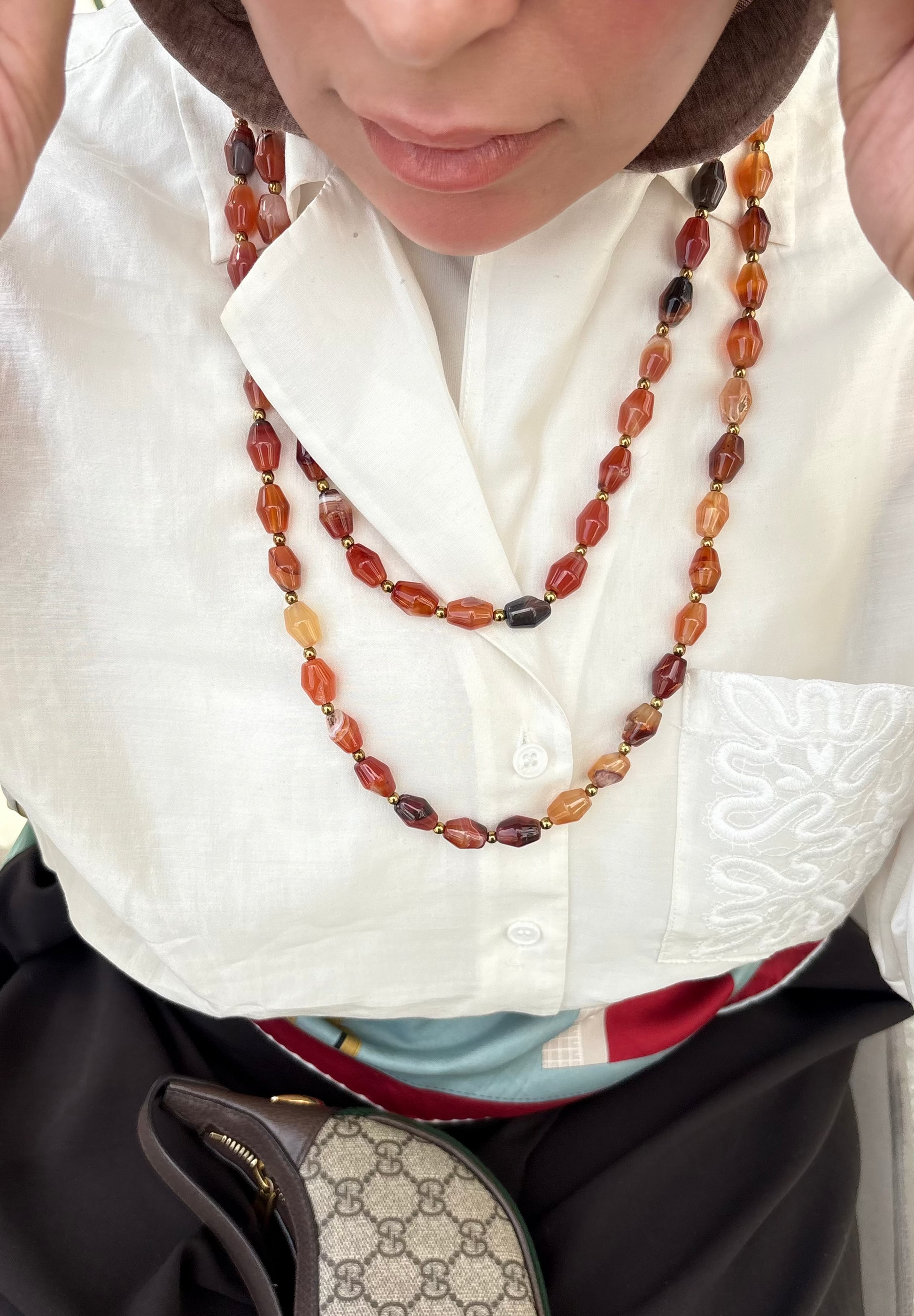 A warm blend of elongated honey-toned agate stones, paired with dark gold hematite for that effortless glow. Light, chic, and made to elevate any look.